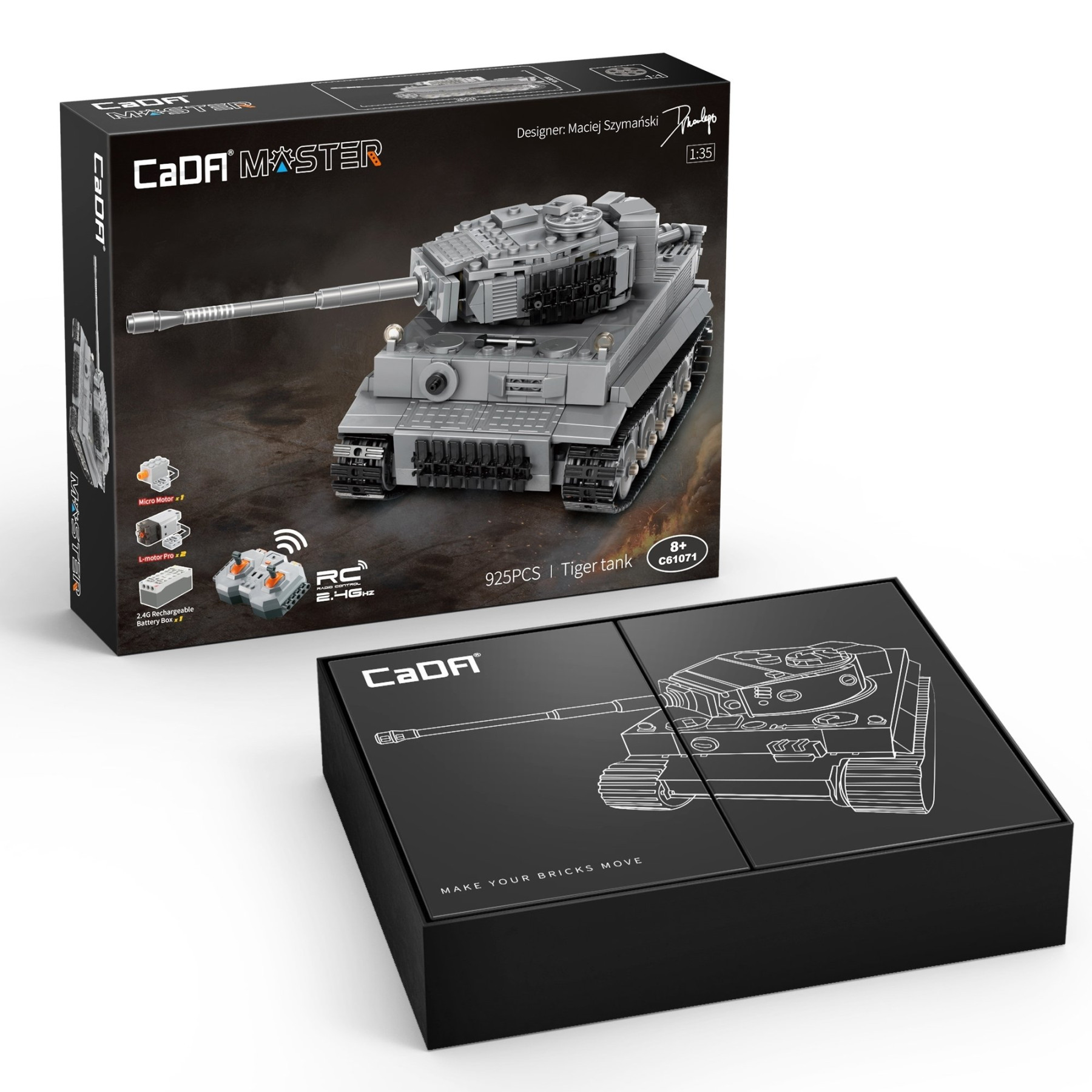 Tiger tank set is an exciting new addition to the world of II World War tanks. C61071W set is a motorized unit made with historical accuracy in mind! In addition to driving/steering the 360-degree turret rotation is another special feature which deserves mentioning.
