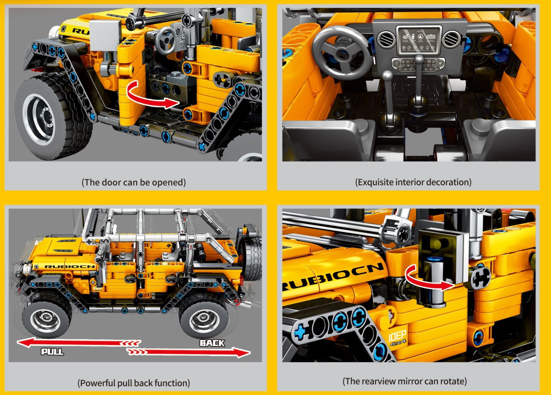 1x 601 Piece Pullback Jeep Wrangler Rubicon building kit